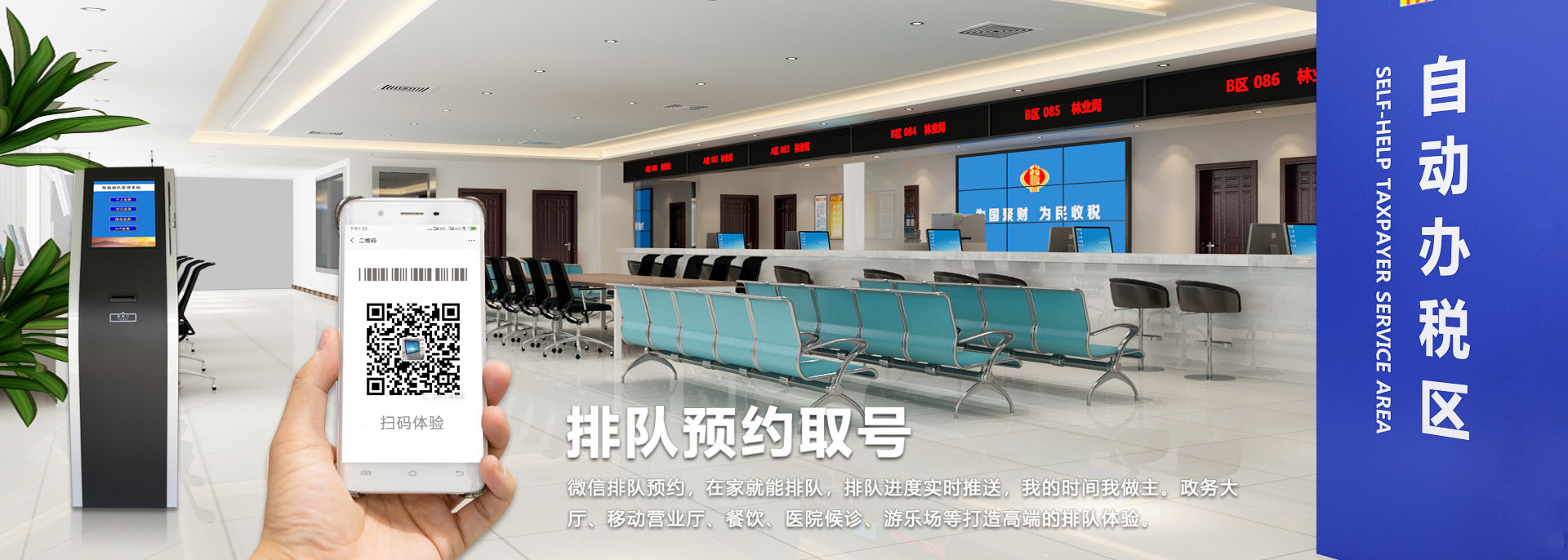 一、系統(tǒng)背景目前,大部分辦事大廳的排隊(duì)方式為傳統(tǒng)取號(hào),即客戶需到大廳里通過(guò)取號(hào)機(jī)獲取相應(yīng)的業(yè)務(wù)排隊(duì)序號(hào)。這種排隊(duì)取號(hào)的方式能很好的解決在辦理業(yè)務(wù)中所遇到的排隊(duì)擁擠和混亂等現(xiàn)象,但是其劣勢(shì)也比較突出:1、排隊(duì)時(shí)間的不確定;2、進(jìn)廳之后發(fā)現(xiàn)排隊(duì)等候隊(duì)伍很長(zhǎng);3、去辦事大廳辦理業(yè)務(wù),花半小時(shí)到達(dá)辦事大廳,取號(hào),再等30-60分鐘甚至兩個(gè)小時(shí)時(shí)間,最后花10-15分鐘甚至更少時(shí)間用于實(shí)際辦業(yè)務(wù);4、還有的人取了號(hào),出去辦事,估摸著時(shí)間折返回辦事大廳,時(shí)間的拿捏當(dāng)然是很困難的,因?yàn)槟銦o(wú)法準(zhǔn)確的估算每個(gè)人辦業(yè)務(wù)花費(fèi)的時(shí)間,人數(shù)越多,這種時(shí)間越難把握。匯通微信預(yù)約排隊(duì)系統(tǒng)方案給排隊(duì)帶來(lái)極致體驗(yàn)。二、系統(tǒng)概況......