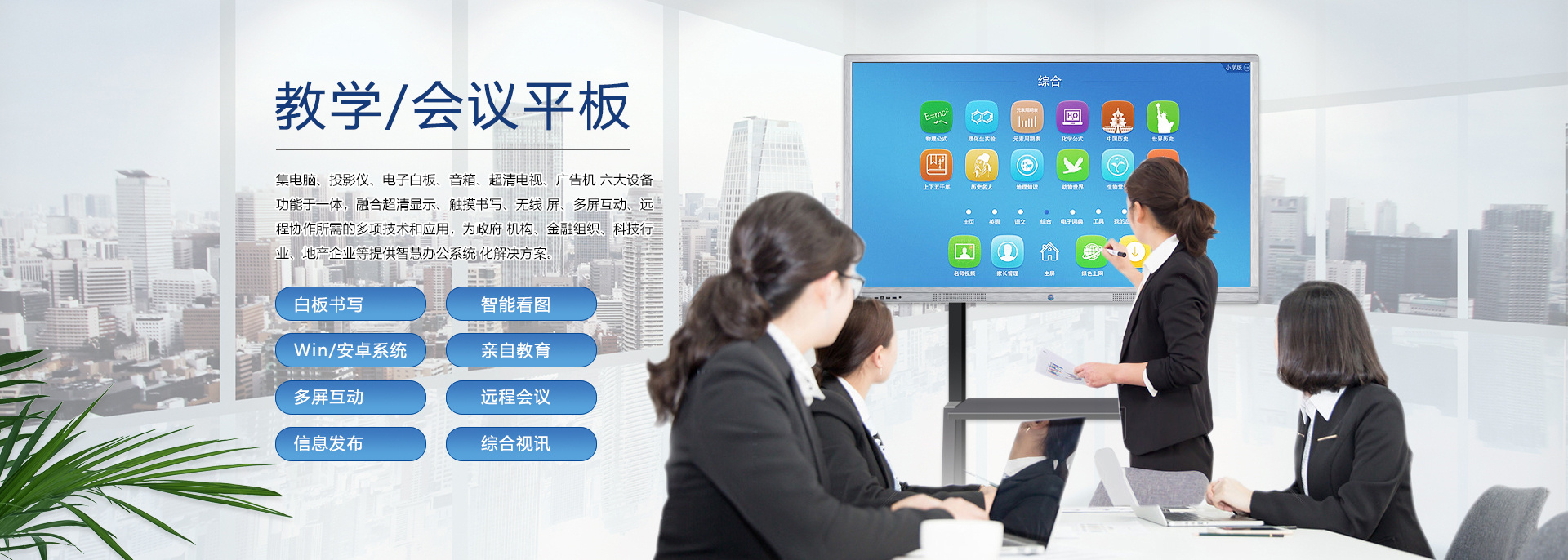 在信息急劇膨脹、互聯(lián)網(wǎng)快速發(fā)展、競(jìng)爭(zhēng)愈加激烈的商業(yè)社會(huì),“開(kāi)會(huì)”已經(jīng)成了職場(chǎng)人士最為熟悉的一種工作方式。尤其是企業(yè),工作中需要通過(guò)許多大大小小的會(huì)議交流信息、解決問(wèn)題和作出決策。會(huì)議的最終目的是提高企業(yè)運(yùn)作的效率,但是許多的企業(yè)卻往往陷入了“低效率”的泥潭。場(chǎng)景一:在與客戶的洽談會(huì)上!準(zhǔn)備好的PPT竟發(fā)現(xiàn)打不開(kāi)了!場(chǎng)景二:開(kāi)會(huì)啦!與會(huì)人員陸續(xù)進(jìn)入會(huì)議室,人手一疊厚厚的資料,一時(shí)間,整潔干凈的會(huì)議室一下子沸騰起來(lái),會(huì)議討論聲,不停翻找資料的刷刷聲好不“熱鬧”!場(chǎng)景三:炎炎夏日,在小“黑”層里,投影機(jī)發(fā)出陣陣熱浪,讓周?chē)揪驮餆岬娜烁拥男母庠辏镁貌荒芷届o下來(lái),更何從談起會(huì)議質(zhì)量!場(chǎng)景四:遠(yuǎn)程......